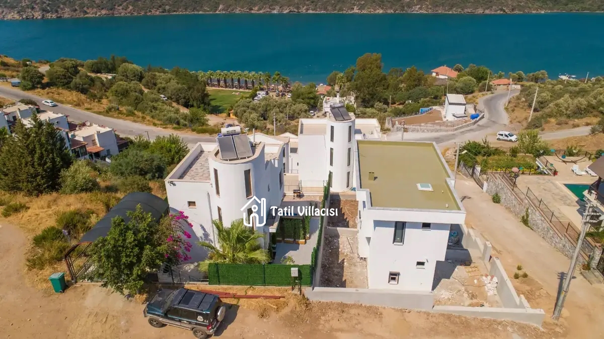Villamız, Bodrum Merkeze 25 dakika, Havalimanına 13 dk, Adabükü plajlarına 7 dakika ve önündeki plaja ise 3 dakikalık yürüme mesafesinde deniz manzaralı, özel havuzlu tüm odaları klimalı ve triplekstir.