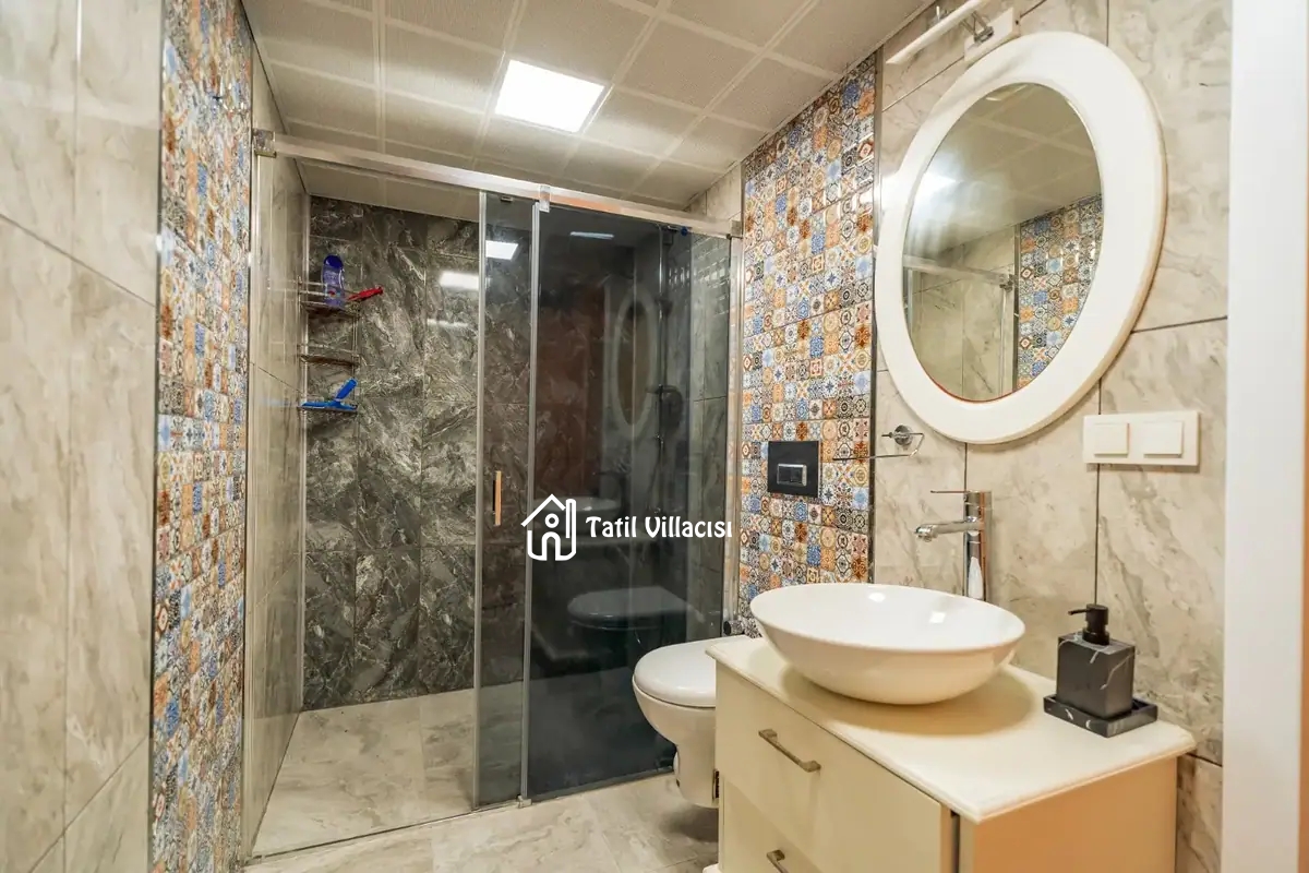 4. Yatak Odası: 2 adet çift kişilik yatak, klima, komodin, boy aynası, TV, şifonyer, makyaj aynası, ortak banyo-wc bulunmaktadır.