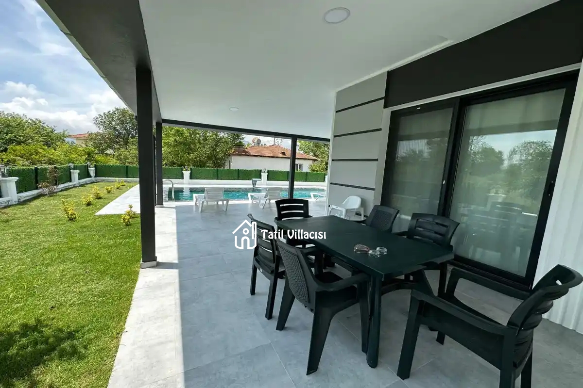 Havuz terasımızda ve bahçemizde, oturma grubu, şezlong, barbekü,  bahçe masası ve sandalyeleri bulunmaktadır.