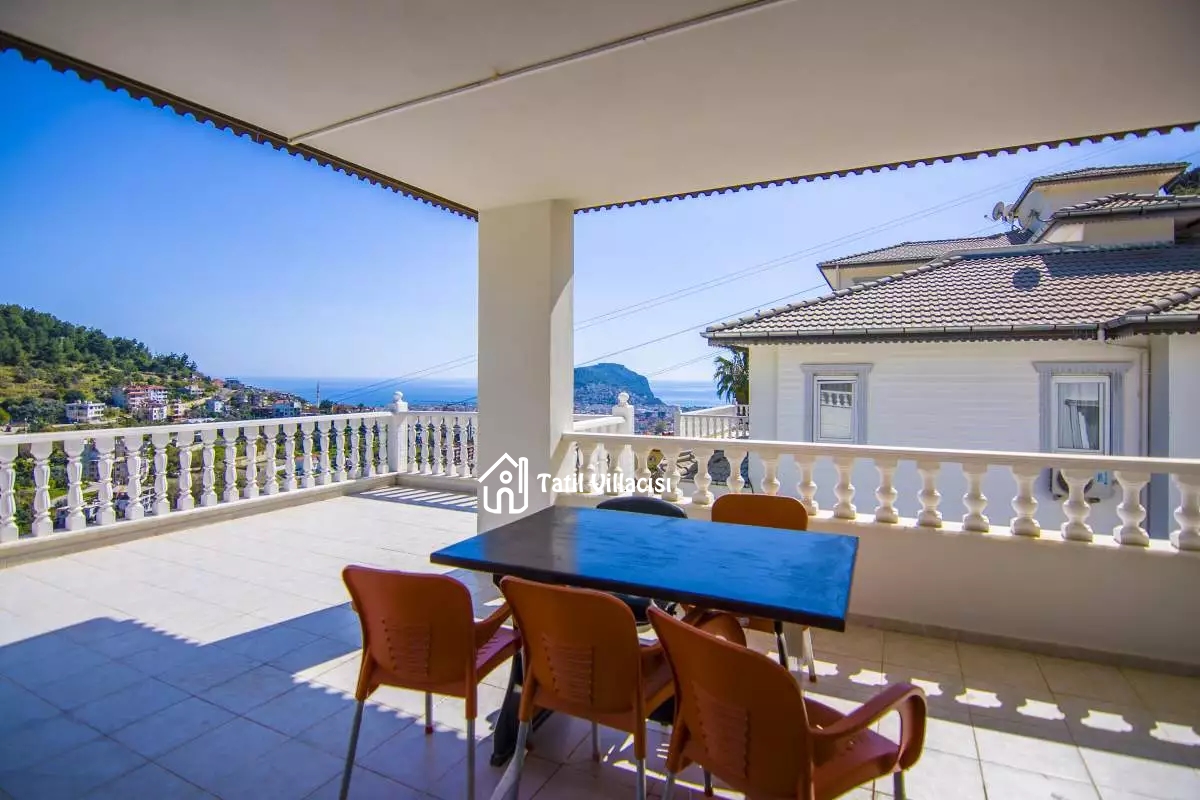 Villa Alanya Beyaz 3, doğa ile iç içe, dağ, deniz ve muazzam Alanya manzarasına sahip Seyir Terası mevkiinde konumlanmış 5 yatak odası ile 10 kişi konaklama kapasitesine sahip lüks villamızdır. Geniş aileler ve kalabalık arkadaş grupları için ideal bir tatil villası seçeneğini oluşturmaktadır. Doğa ile iç içe orman ve deniz manzaralı villamız sessiz sakin bir tatil imkanı sunmaktadır. Özenle dizayn edilen villamız şık tasarımı ile misafirlerine konforlu bir tatil sunmaktadır. Sevdiklerinizle güvenli bir tatil geçirebilmeniz adına villamızda güvenlik kamerası mevcut olup otopar sorunumuz yoktur.