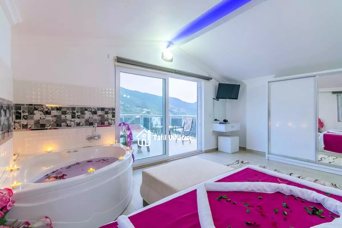 Villa Begonvil, Kalkan İslamlar Köyünde konumlanmıştır. 5 yatak odalı 10 kişi konaklama kapasiteli villamız, geniş aileler ve kalabalık arkadaş grupları için ideal bir tatil villası seçeneği sunar. Villamız, korunaklı özel havuza ve çocuk havuzuna sahiptir. Havuz terasında bulunan bahçe mobilyaları, şezlong, yemek masası, mangal ve hamak misafirlerimizin keyifli bir tatil geçirebilmesi adına özenle seçilmiştir. Bahçesinde çocuklarınızın eğlenebileceği oyun parkı bulunmaktadır. Doğa ile iç içe olan Villa Begonvil, şehrin kalabalığından sıkılmış sessiz sakin tatil isteyen misafirlerimiz için ideal bir seçenektir.