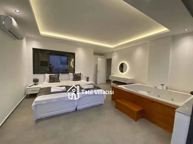 1.Yatak Odası : Bir adet çift kişilik yatak, komodin, elbise dolabı, klima, ebeveyn banyosu ve jakuzi bulunmaktadır.