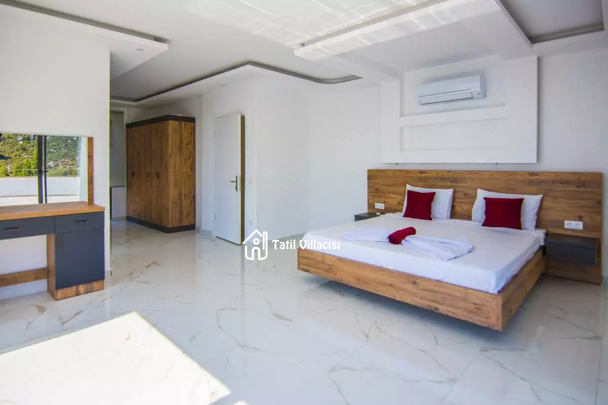 2. Suit yatak odası: Bir adet çift kişilik yatak, klima, komodin, elbise dolabı, ebeveyn banyo-wc si bulunur.