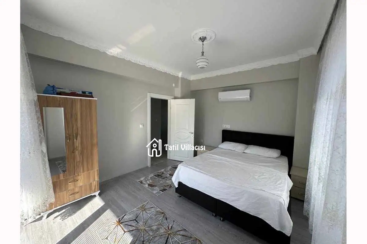 2. Yatak Odası: Bir adet çift kişilik yatak, bir adet tek kişik yatak, komodin, klima, elbise dolabı, ortak banyo-wc si bulunmaktadır.