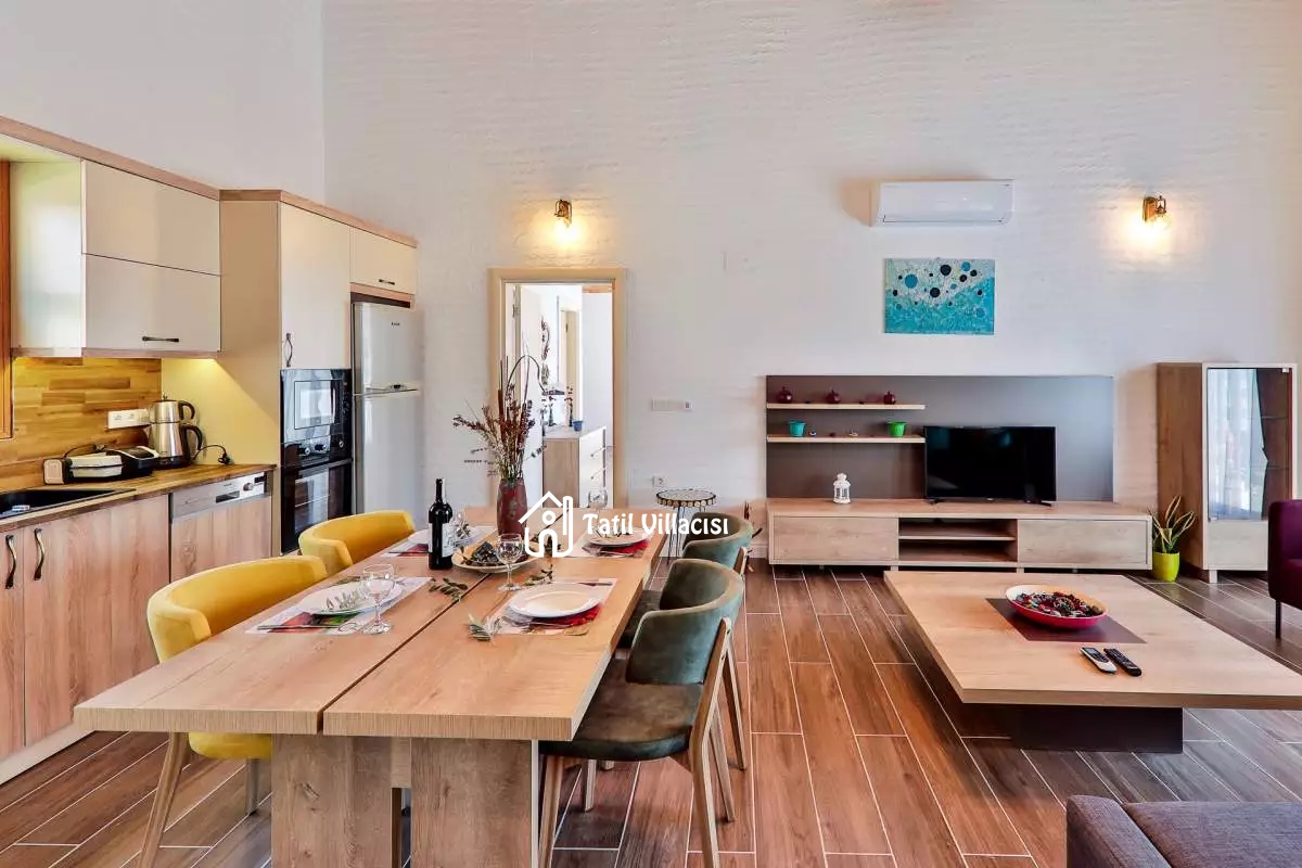 Lüks ve geniş bir mutfağa sahiptir. Buzdolabı, bulaşık makinası, çamaşır makinesi, fırın, ocak seti, kettle/çay makinesi, yemek takımı, tava, tencereler, çatal, bıçak vb. mutfağımızda her şey sizler için düşünülmüştür.