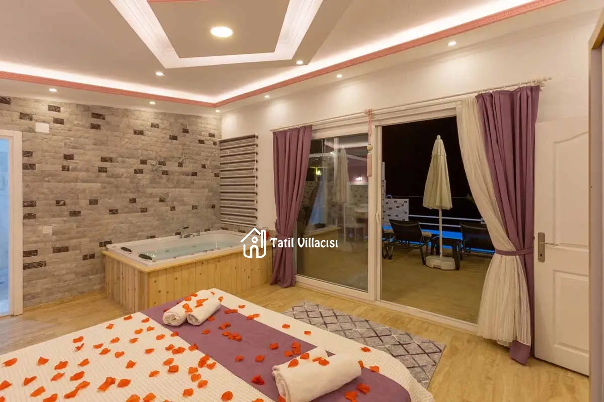 Kalkan Akbel mevkiinde doğa içerisinde konumlanmaktadır. 2 yatak odalı 4 kişi konaklama kapasitesine sahiptir. Jakuzili yatak odası ile balayı çiftlerine hitap etmektedir. Özel yüzme havuzu korunaklıdır, dışarıdan görünmez. Muhafazakar ailelerimiz için ideal bir seçenektir. Lüks mobilyalarla tasarlanan villamız misafirlerine konforlu bir tatil sunmaktadır.